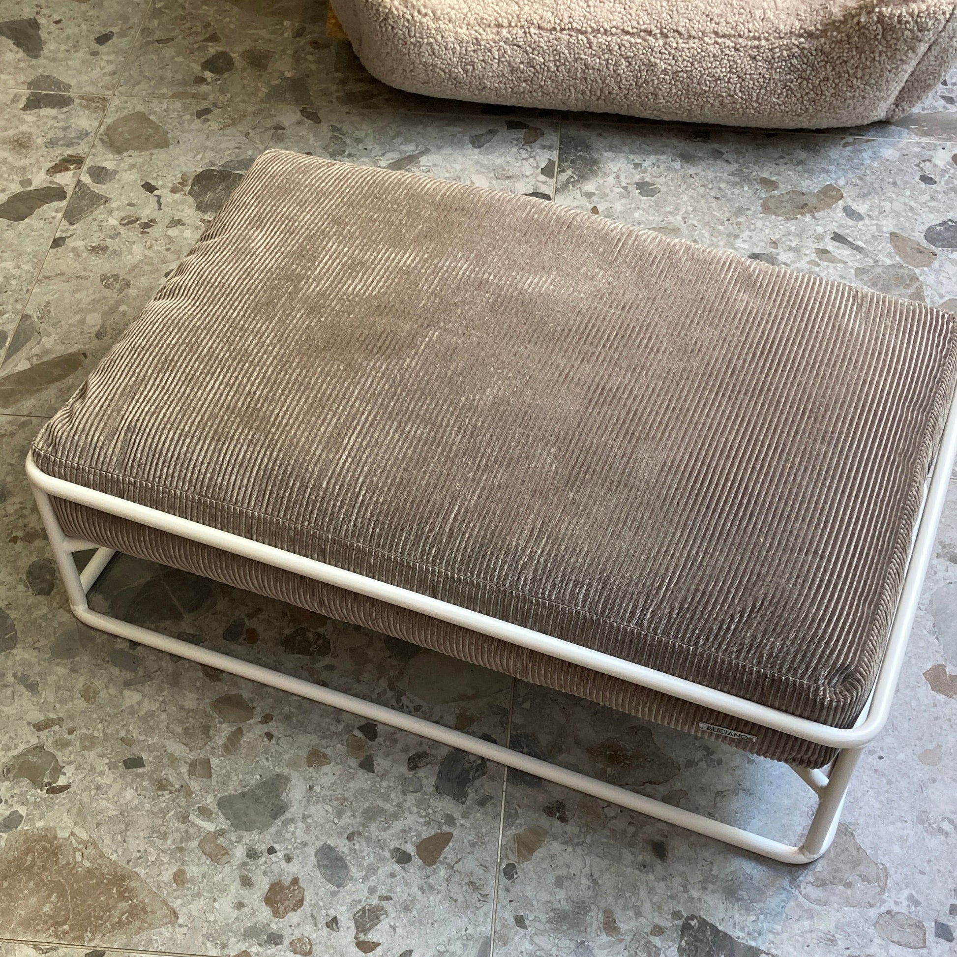 La housse amovible avec fermeture éclair est à la fois résistante et douce, offrant un confort supérieur à votre fidèle compagnon à quatre pattes. Ce lit est équipé d'un châssis en acier thermolaqué et d'un tissu en velours côtelé.